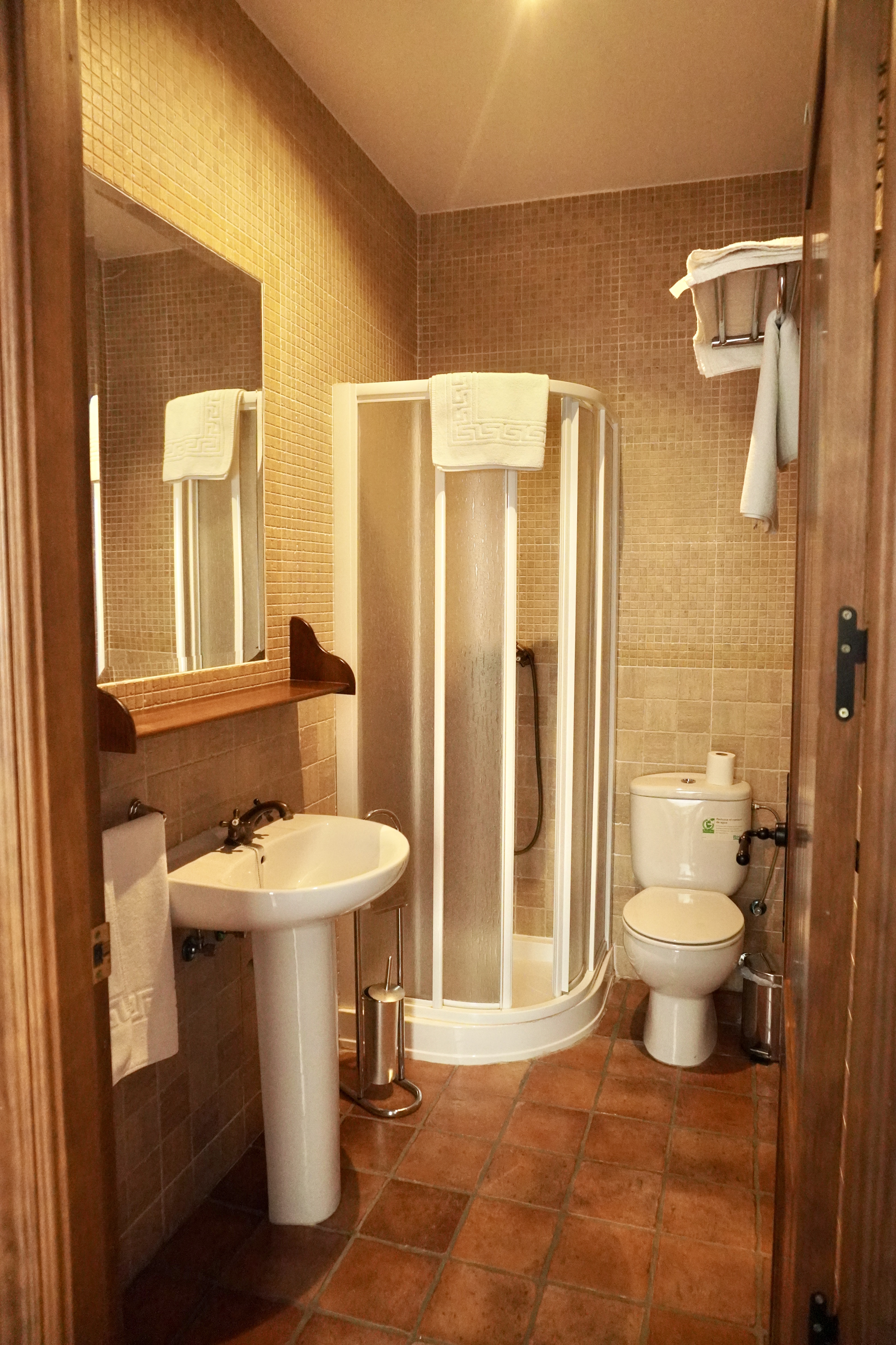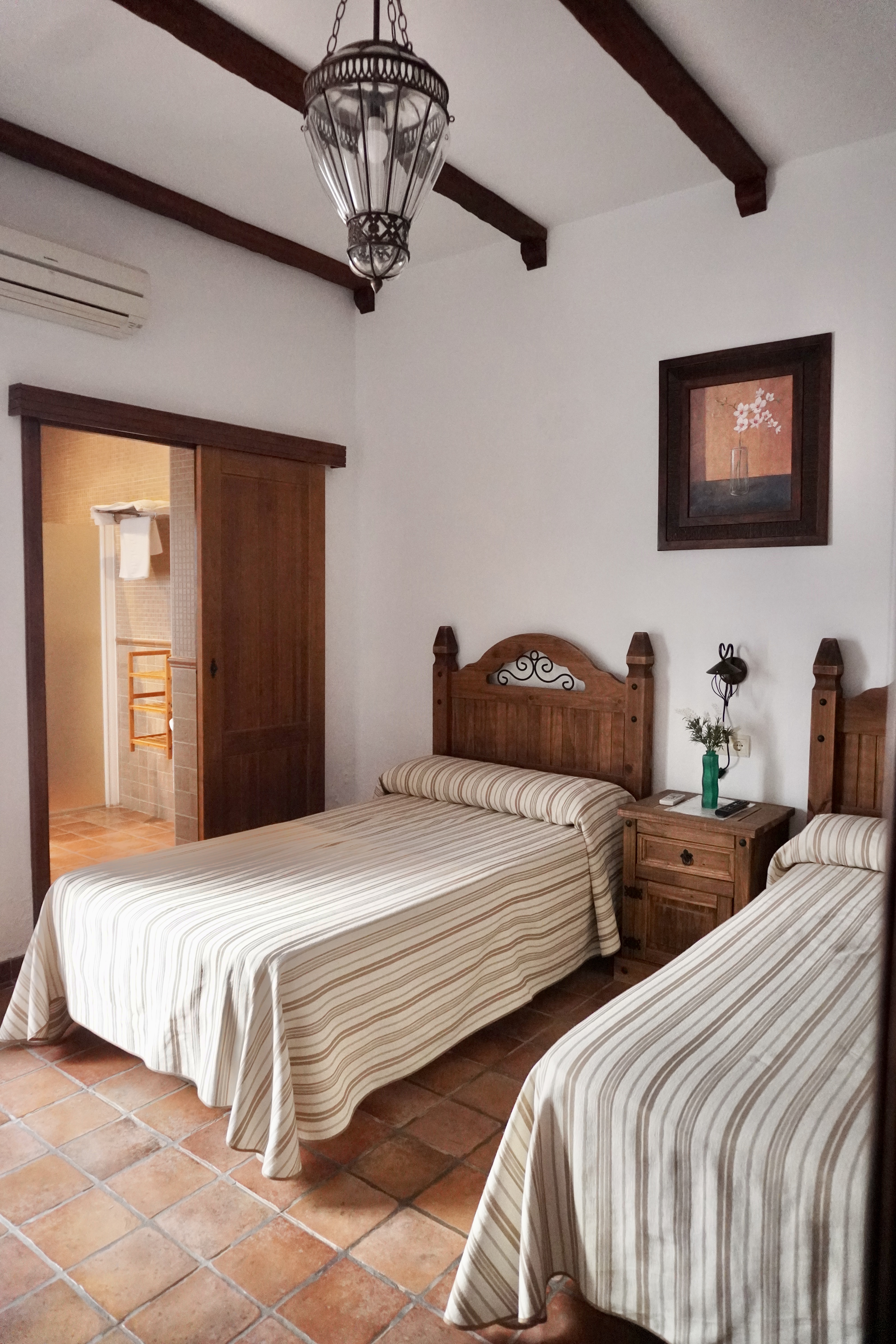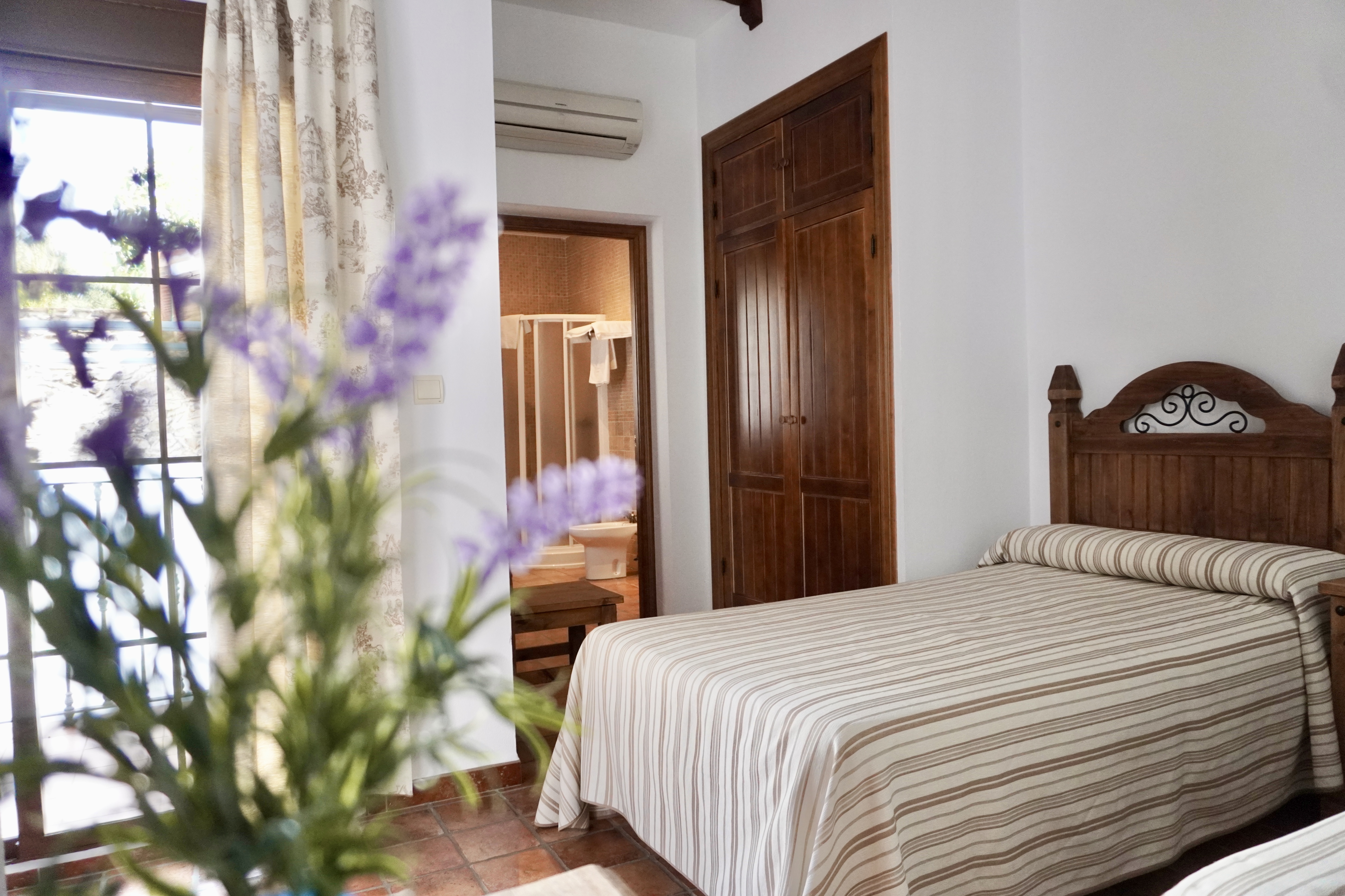 - Habitaciones: la casa cuenta con cinco acogedoras habitaciones dobles con vistas a la sierra, espaciosas y decoradas con gusto, en armonía con el entorno. Una de ellas está adaptada para personas con movilidad reducida. Todas las habitaciones cuentan con un cuarto de baño privado para cada una, aire acondicionado y calefacción y televisión Smart TV de 42 pulgadas.