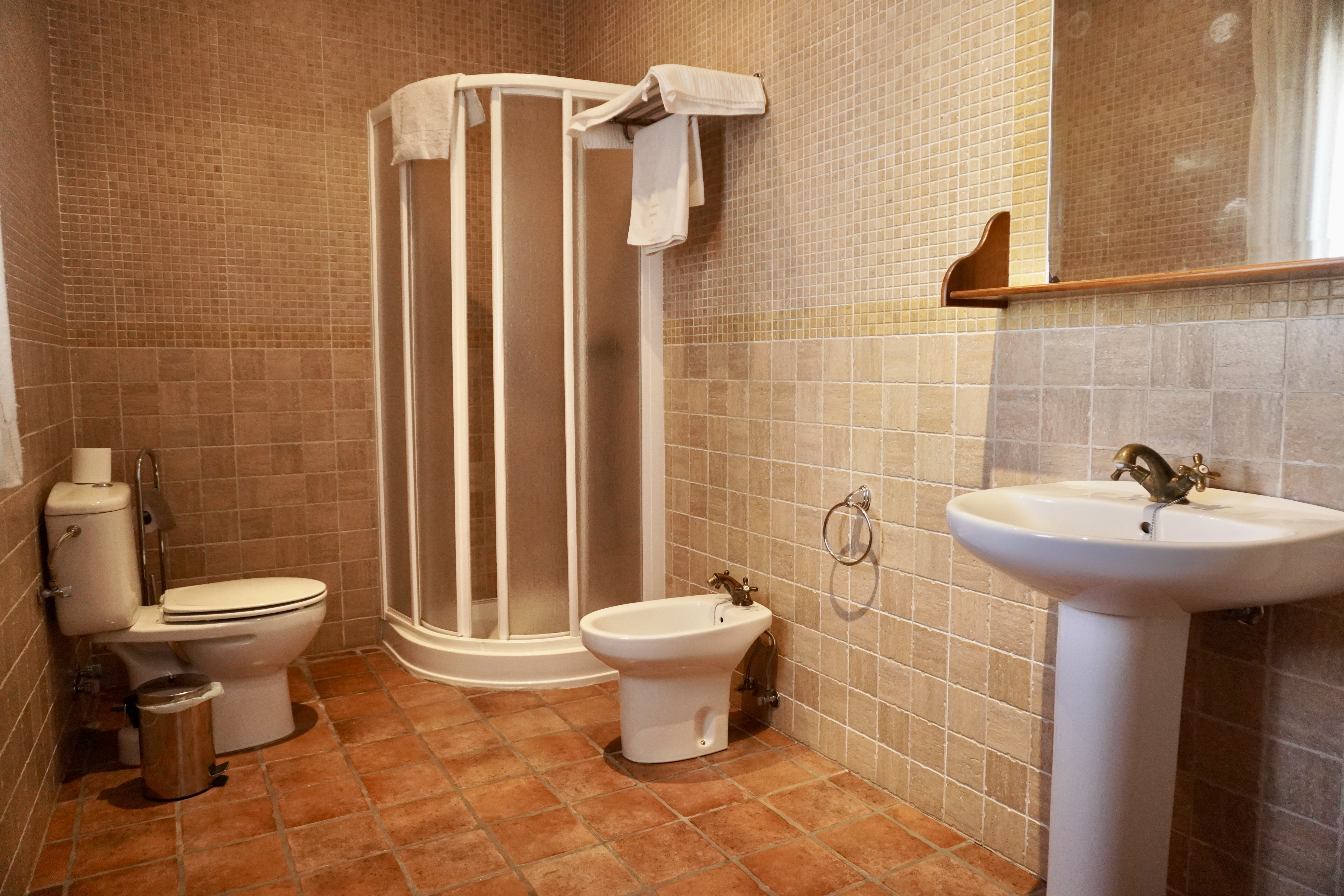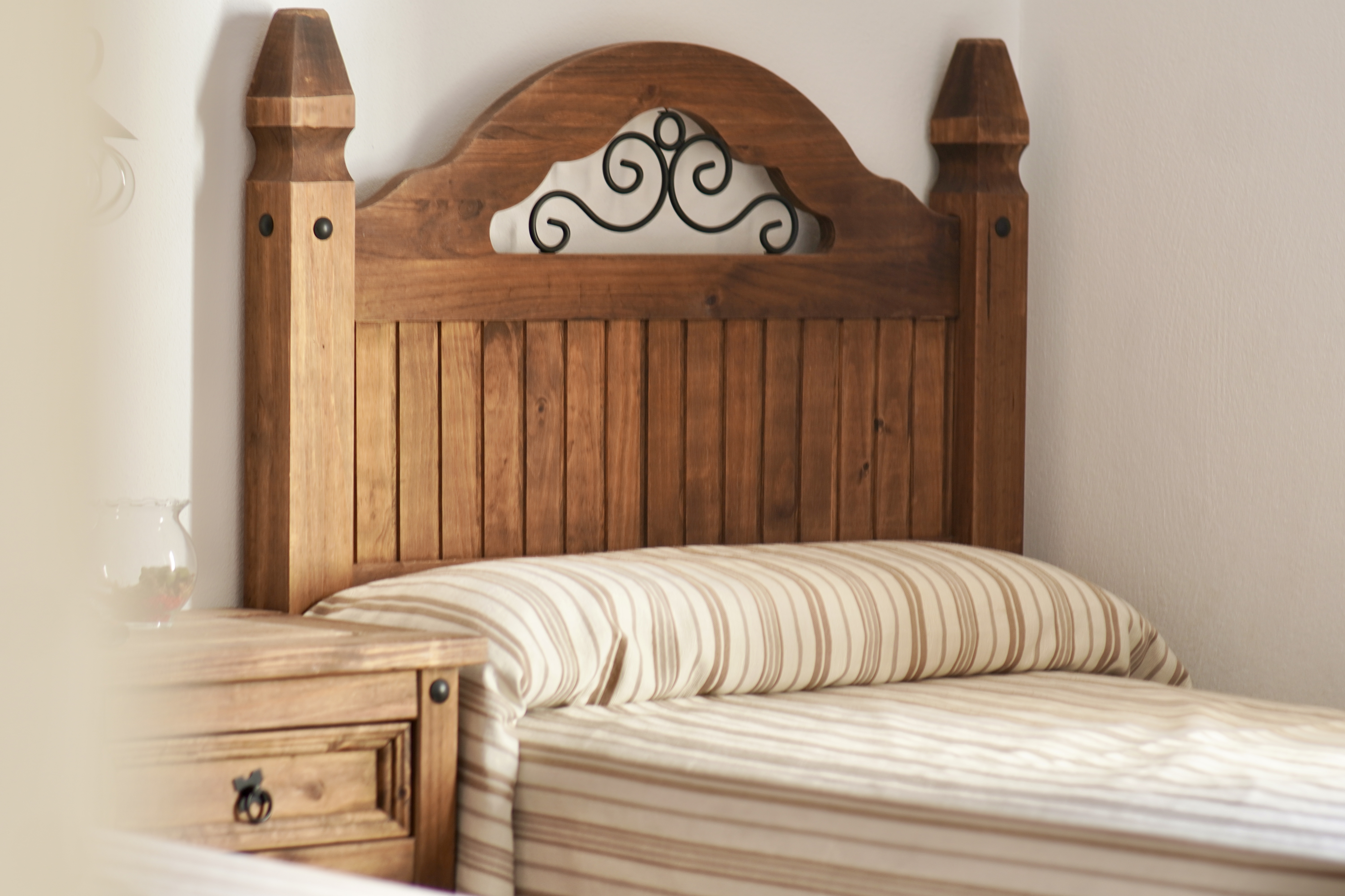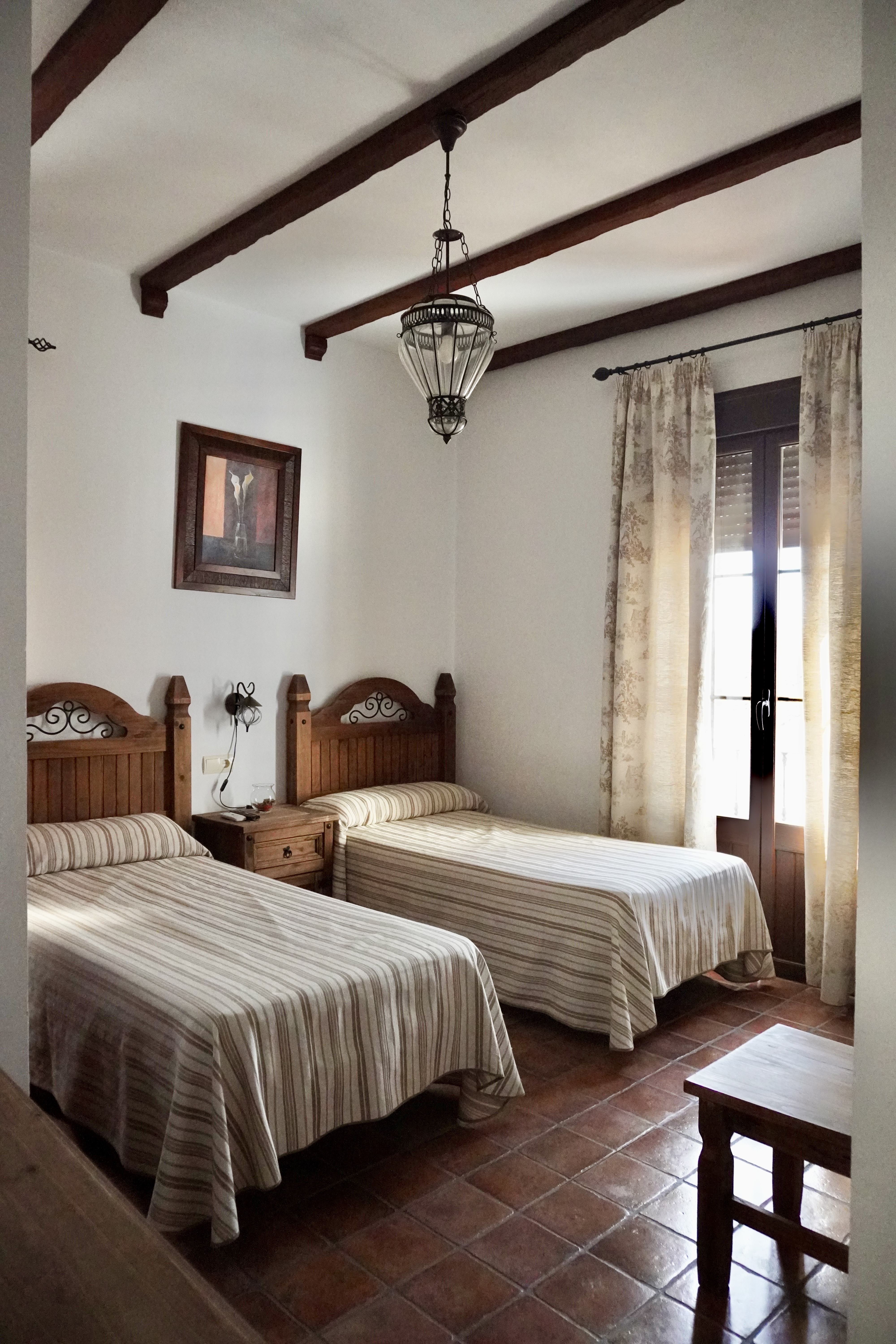 - Habitaciones: la casa cuenta con cinco acogedoras habitaciones dobles con vistas a la sierra, espaciosas y decoradas con gusto, en armonía con el entorno. Una de ellas está adaptada para personas con movilidad reducida. Todas las habitaciones cuentan con un cuarto de baño privado para cada una, aire acondicionado y calefacción y televisión Smart TV de 42 pulgadas.